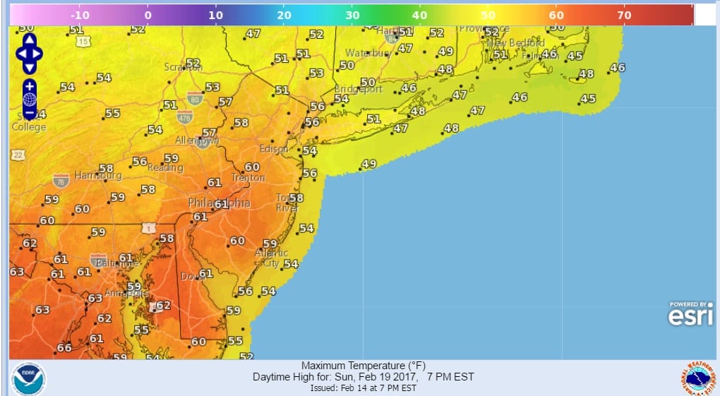 WARM WEATHER SUNDAY FORECAST HIGHS