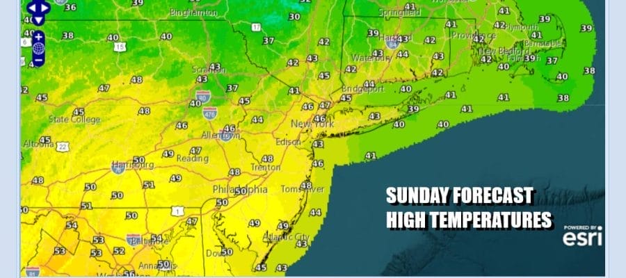 Wednesday with those east winds means that most highs will be in the 50s and coastal locations may only top in the 40s. It will be a dry day with clouds and some sunshine as high pressure builds to the north. Thursday likely see a greater spread of temperatures from north to south with a stalled front across Southern New Jersey and Southern Pennsylvania. We will likely see clouds and 40s & low 50s to the north of the stalled front and clouds with some sun to the south of the front with highs in the 60s.