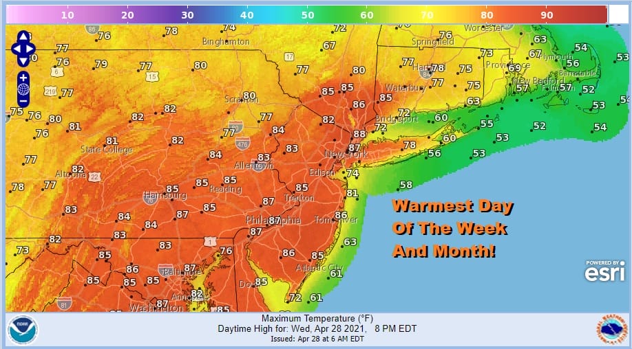 Warmest Day of the Week And Month Highs Low to Mid 80s. Showers Thunderstorms Thursday
