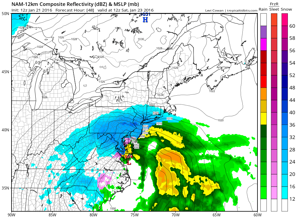 In case you missed it the map above is my snowfall forecast map which really hasn’t changed that much since the beginning. The tougher part of the forecast seems to be the areas with the lower amounts because we still can’t get a handle on how far north the snow actually gets. Also the change over a matter of miles will be large especially as you go south from very little to 6 inches to 12 inches. Blizzard Watch is in effect from New York City south and west to include all of New Jersey and Southeast Pennsylvania.