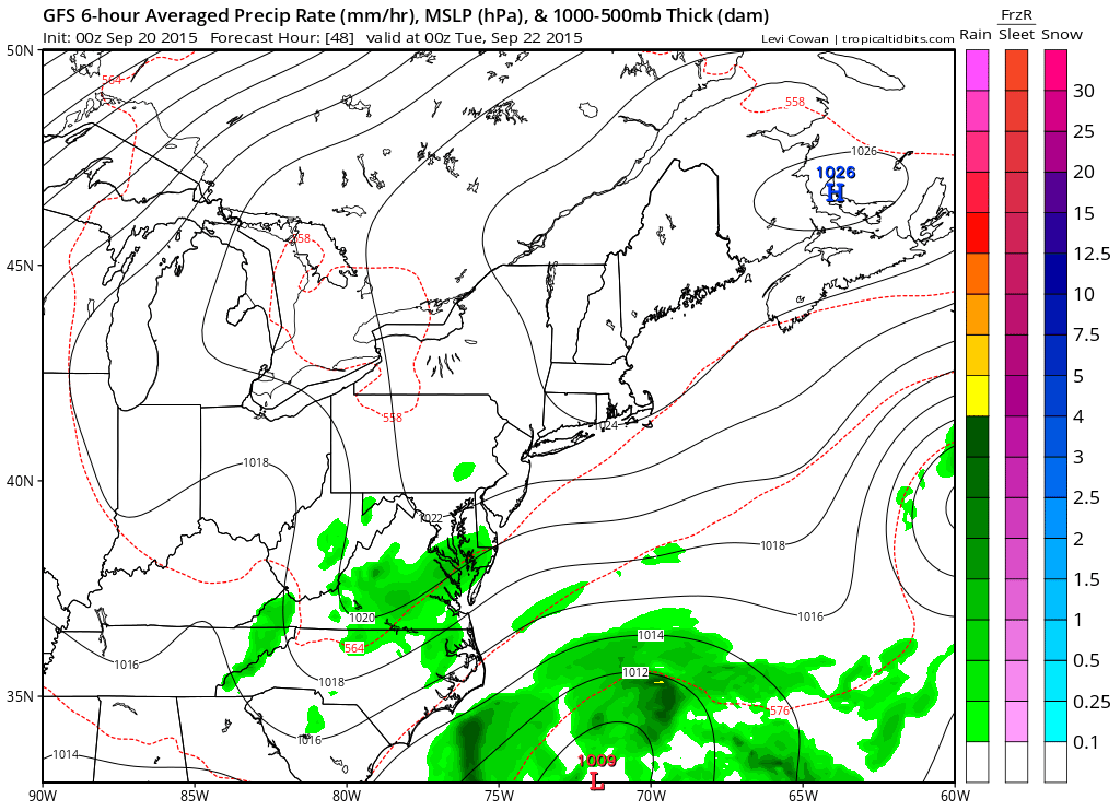 The issue for Monday and Tuesday will be how much cloud cover will we be dealing with. There should be some sunshine to start on Monday but a northeast flow off the ocean and high pressure from the north will likely bring in at least some cloud cover from the east and spread it inland. That will affect the temperatures by keeping them in the low to middle 70s. By days end tomorrow the light rain that develops from the onshore flow stays mainly to the south. By Tuesday we have low pressure offshore and that will probably feed more clouds in however north and northeast of the coast line there maybe some breaks of sunshine. Again clouds cover will probably put a lid on temperatures as will a northeast breeze.