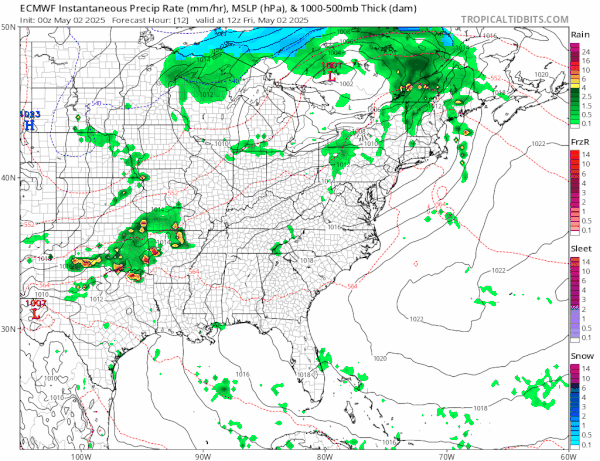 The set up for Saturday involves lots of efficient daytime heating and an increasingly unstable atmosphere. Later in the afternoon and evening Saturday as the European model shows we will see areas of showers and thunderstorms develop across New York State Pennsylvania, Maryland, and Virginia and the eventually spreading into New Jersey, Southeastern NY and Long Island as well as Southern New England.