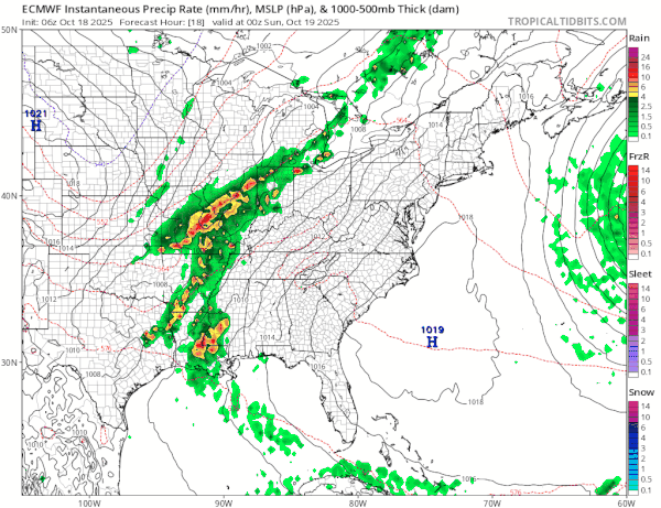 Sunday night into Monday a cold front from the Midwest southward to the Deep South will move eastward and spread showers and thunderstorms through New York, Pennsylvania and points south. These showers and storms will sweep through as the cold front swings eastward. A secondary low forms in Upstate NY adding a little extra juice to the equation and we suspect there could be some isolated severe thunderstorms in the mix as the front passes Monday morning.