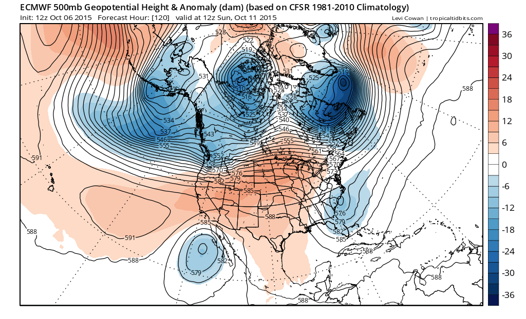 Jumping to the European model this morning we see trouble for North and South Carolina again as the bottom of the trough separates and a low forms off the southeast coast and sits there for 2 days or so. This could mean some additional rains for them that normally wouldn.t mean much but after you had 2 feet of rain..even another inch could be problematic. This would be for Sunday into Monday.