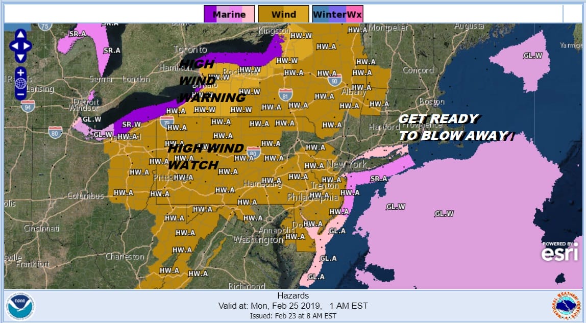 By Monday afternoon perhaps the extreme gusts start to ease a bit but it is a large area that will be gusting to 40 mph plus with sustained 20 to 35 mph or even sustained gales through much of this wind event. At least we will have a mix of sun and clouds Monday but it will be cold with temperatures in the 30s and wind chills down in the teens. Certainly it will be a day of windblown hair, bad hair, and hat hair across the Northeast & Middle Atlantic states.