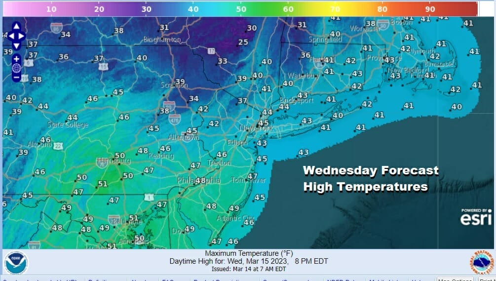 This time of year while it still can get cold it doesn’t last and the bounces higher are actually quite solid. Winds will ease somewhat tonight under clear skies with lows in the mid 20s to lower 30s. Thursday begins one of those bounces as high pressure moves offshore and a southwest flow develops. Sunshine should take high up into and in some cases through the 50s.
