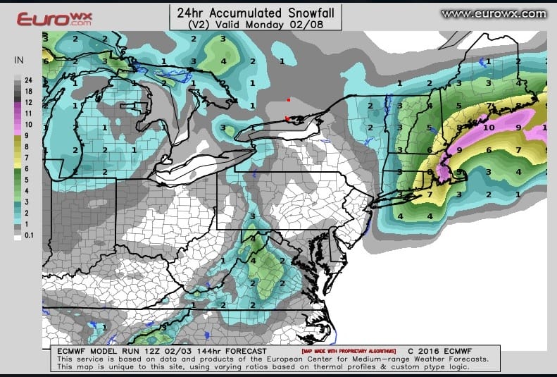 Winter 2016 Insanity European Snowfall Forecast Monday 2/8/2016