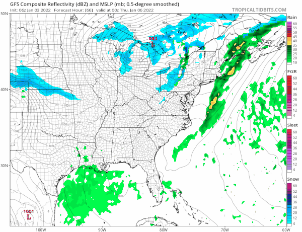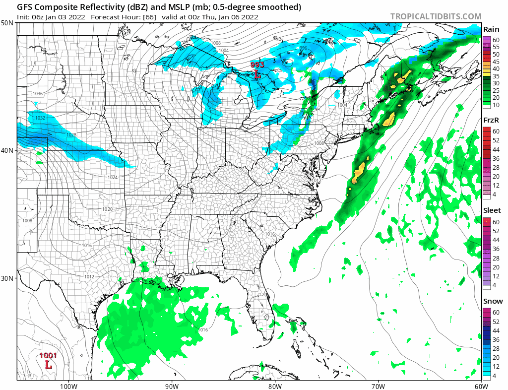 Late last week we talked about a potential for snow at the end of this week. The GFS model has a habit of showing storms in the long range, losing them, and then slowly bringing them back This is where we seem to be now as the models has been slowly bringing back the idea of a storm forming in the Central Appalachians and heading northeast to just south of Long Island Thursday night and Friday morning. We will discuss this more once this current storm is done.
