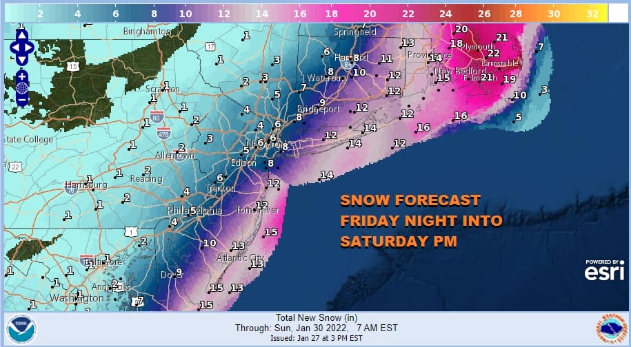 Snow forecasts from the National Weather Service have been raised higher in much of the warning area. Check the National Weather Service snow forecast maps below and be sure to check the time stamps to see if they have been updated. They should all have PM time stamps