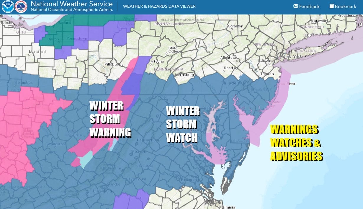 Winter Storm Watch Southern Half of New Jersey, Southeast PA
