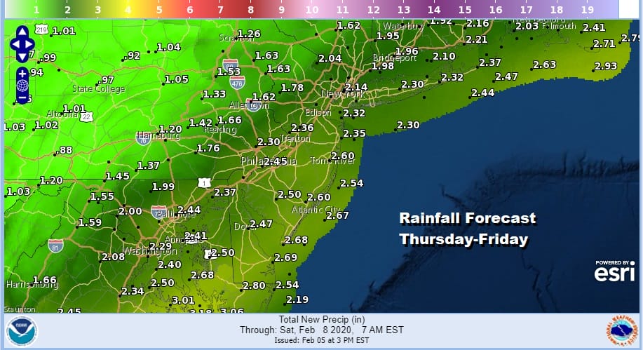 Rainfall amounts of 2 to 3 inches from NYC and Long Island southward are likely before this all comes to an end Friday morning. Don’t be surprised if we hear a few rumbles of thunder here Thursday night but it won’t be severe weather. Windy conditions will develop Friday as the low moves away to the northeast. Weather conditions should improve as the day wears on Friday with clouds and some developing afternoon sun but winds will gust to 30 to 40 mph at times. Temperatures on Friday will settle in the 30s. The weekend starts cold but dry Saturday with some sunshine. Highs will be in the 30s. Some clouds will be around Sunday with highs in the upper 30s and lower 40s. Then the next cold front arrives with a chance for showers on Monday.