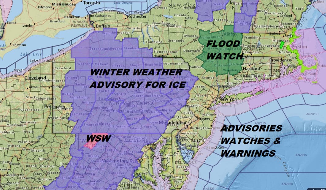WINTER WEATHER ADVISORY FOR ICE ACROSS MUCH OF EASTERN PENNSYLVANIA