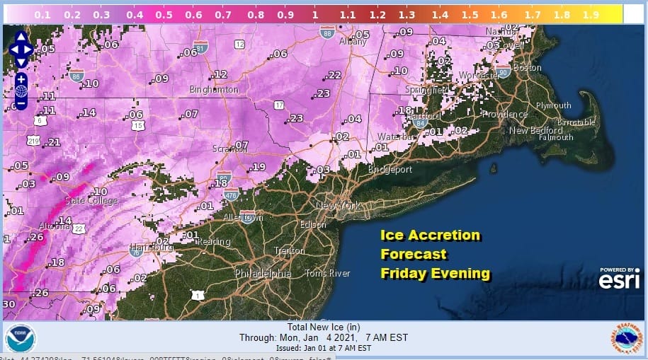 This is going to be a minor icing event for most folks with ice accretion under a tenth of an inch. Some areas inland in Pennsylvania and Upstate NY could wind up with between a tenth to a quarter but this doesn’t look like a major icing event.