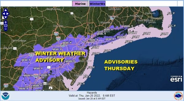 Winter Weather Advisory South Central, Eastern PA, Northern NJ, NYC,