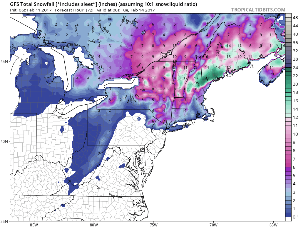 My snow forecast map I think shows things pretty fairly however I am going to be watching this very closely because a faster developing wave or more of a northeast wind could make a huge difference in the outcome on Sunday.